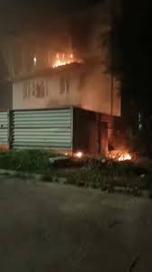 O ataque atingiu um prédio residencial de 24 andares, danificando varandas e quebrando janelas, entre outros danos. Além disso, a queda de detritos causou um incêndio em uma "zona industrial" no distrito de Krasnoarmeisk, e os bombeiros foram acionados.